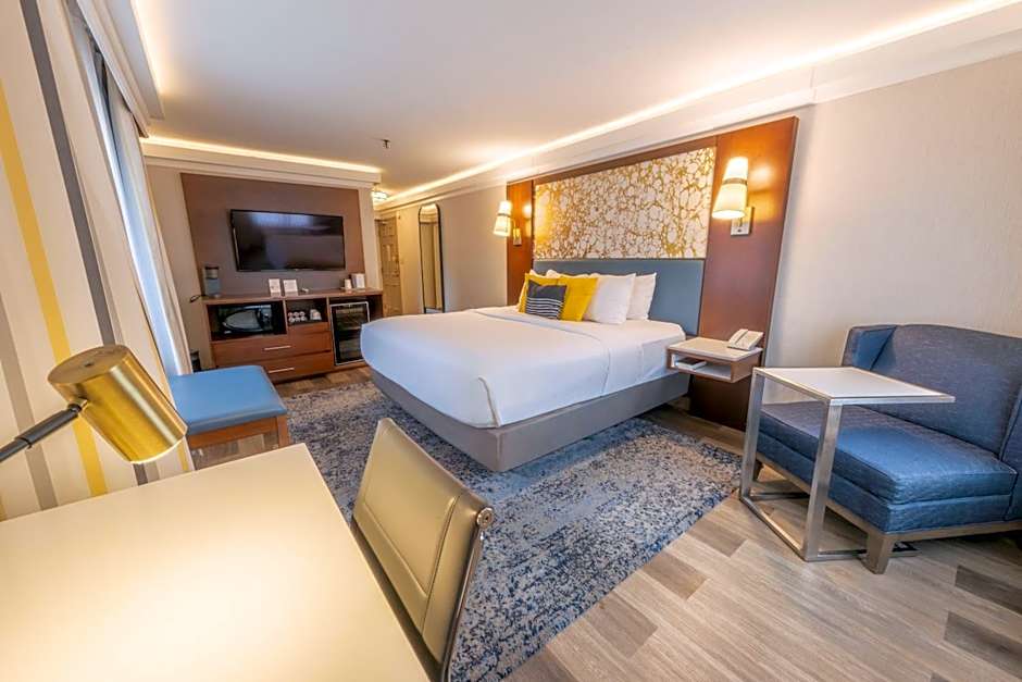 Room choices range from Studio and Deluxe King to more expansive suites, with several layouts offering kitchenettes for easy in-room meals. The Studio, King and Deluxe, King rooms come with a King bed, while Studio, King, Kitchenette and Studio, 2 Queen layouts add versatility for longer or family stays. For larger groups, the Suite category includes arrangements with two Queen beds and kitchenettes, or a King bed paired with a sofa bed; the expansive Suite can accommodate up to 8 adults and 5 children.